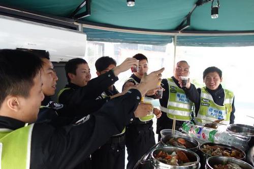 ????記者看到,由于警務站不算寬敞,所有人都站著吃飯。侯桂文說,在警務站剛成立的時候,吃年夜飯還得在崗亭后門另外搭建一個小帳篷。那時候,大家都從家里自帶幾道拿手小菜讓彼此共享。“就是這樣的同甘共苦,鑄造了大家堅固無比的友誼。”他說。