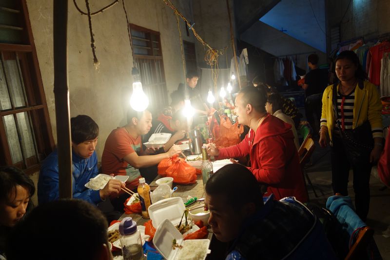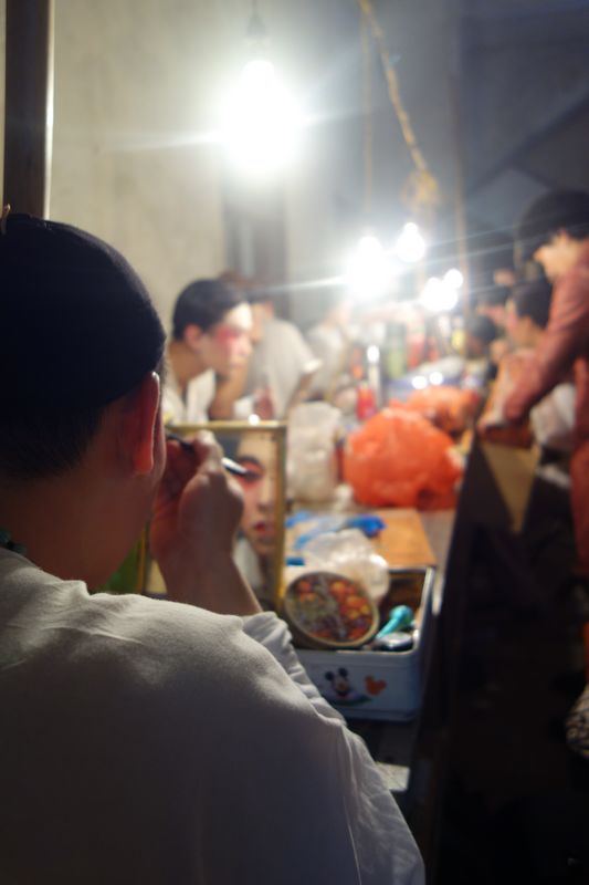 ????劇團演員阿楚是最后一次參加春班演出了。1993年他開始跟著劇團跑“春班”,當(dāng)初他就是喜歡在臺上揮舞大刀,蹦蹦跳跳,成為一個“角”是他心中的夢想。20年后選擇轉(zhuǎn)行,阿楚比劃著手說:“不到盡頭,也不會選擇離開。”家里有了孩子,阿楚的生活壓力更大了,于是他在2013年底向劇團交了辭職信。想到劇團“春班”期間缺人,他就繼續(xù)幫忙:“演到春班結(jié)束,我就算是‘退出曲壇’了。”演出結(jié)束,他和幾個要好的兄弟到戲臺旁的小食攤吃涼粉,一如他十多歲時循著美食到處轉(zhuǎn)的樣子。
