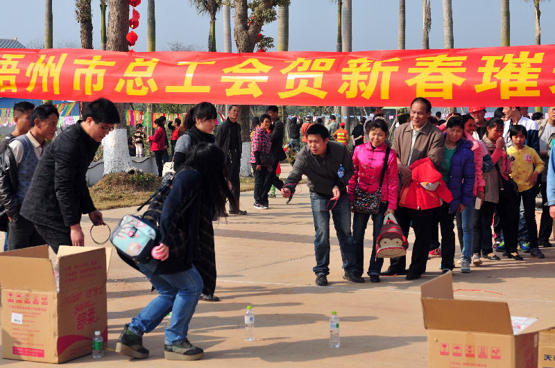 ??? 2月3日,市總工會(huì)在玫瑰湖公園舉辦新春璀璨廣場(chǎng)文化游藝活動(dòng),拋圈、猜燈謎等游戲吸引了不少返鄉(xiāng)民工和職工參與。 李煜榮 攝