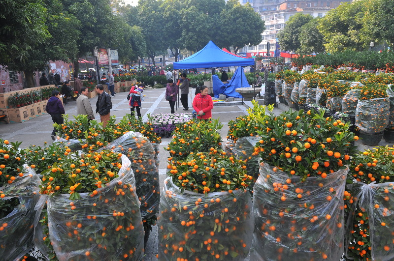 今年春節(jié)年花年桔市場(chǎng)遭遇“寒流”。李鴻榮 攝