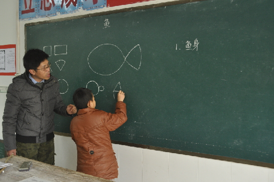 ????“用正方形、長方形、三角形、扇形隨意組合,可以畫成什么種類的魚呢?……”2月17日,梧州市中小學生新學期開課第一天,在蒼梧縣石橋鎮培中小學三年級一班,一位身材不高、穿著樸實的老師,正在向這所村校學生傳授畫畫的基礎知識。