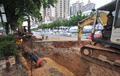 ????而在站前廣場(chǎng)工地上,100多名施工人員正在緊張進(jìn)行廣場(chǎng)花崗巖鋪設(shè)、汽車(chē)坡道工程施工和地下通道清理等工作。據(jù)了解,南廣鐵路梧州南站綜合交通樞紐及基礎(chǔ)設(shè)施項(xiàng)目占地648畝,項(xiàng)目投資約16億元,分三期推進(jìn)建設(shè),建設(shè)內(nèi)容包括站前南、北廣場(chǎng),地下工程,明珠天橋等。