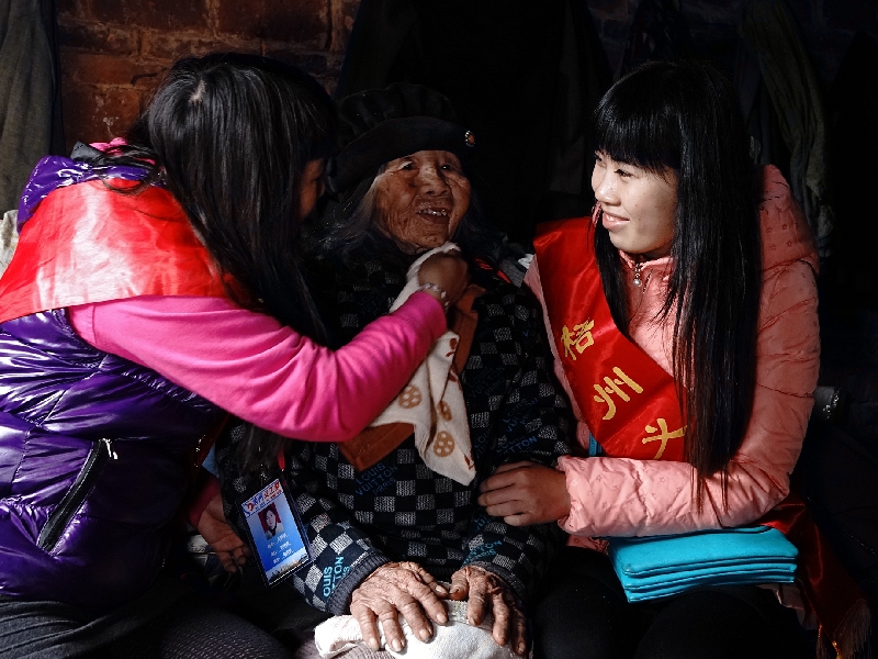 2月23日,義工們在木雙鎮鄉村慰問孤寡老人。彭志創/攝