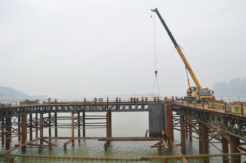 ????西江四橋項(xiàng)目有關(guān)負(fù)責(zé)人表示,自去年開工建設(shè)以來,西江四橋順利完成了南、北兩岸棧橋和基礎(chǔ)鋼平臺的施工建設(shè),并同步加快制作鋼圍堰和鋼筋籠,逐步展開2個主墩的鋼圍堰安裝下沉和另外6個引橋橋墩的樁基礎(chǔ)施工。