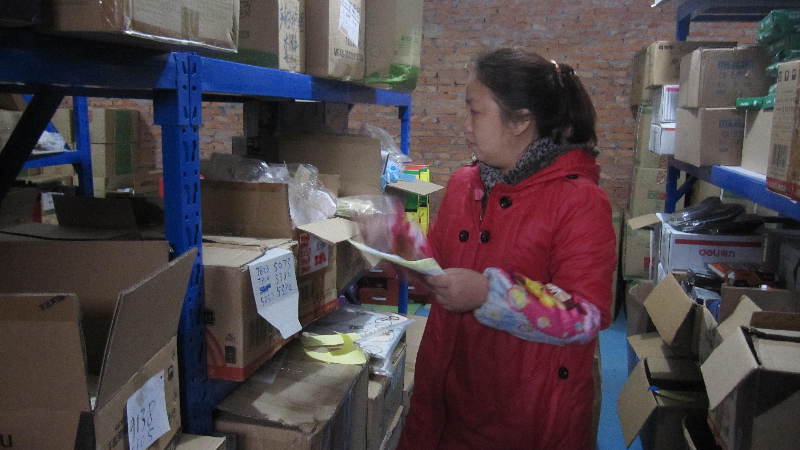生意繁忙時,楊芳會親自到貨倉收拾貨物。 西江都市報記者 楊珊/攝
