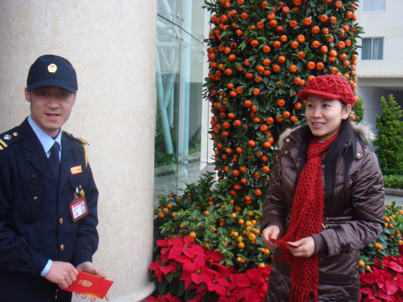 今年春節后的第一個工作日,莫紅梅向員工發利是。圖片由被采訪者提供