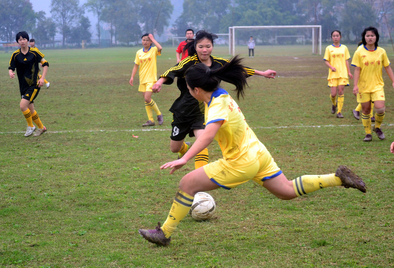 ????足球女將們的年齡只有13歲至14歲。然而在球場上,她們停球、射門、過人,一招一式有板有眼,競賽精神絲毫不遜職業選手。
