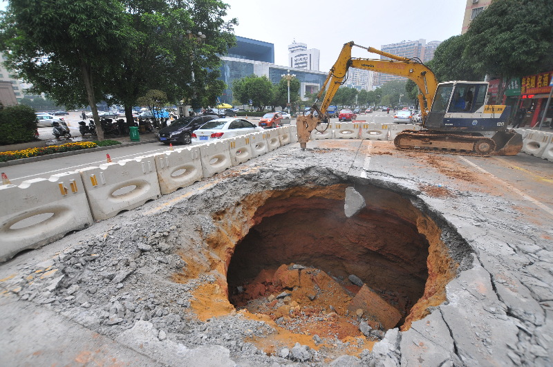 ??? 3月14日下午,在奧奇麗路,市政部門已組織施工隊伍對道路進行破拆,以修復路基。 據了解,13日下午市政部門工作人員在下水道排查時,發(fā)現奧奇麗路中段的一處機動車道發(fā)生路基下沉,路下大量泥土被淘空,下沉深度近八米,市公安交警部門隨即對該段道路進行了封閉。 李鴻榮 梁萍 徐新榮 攝