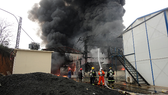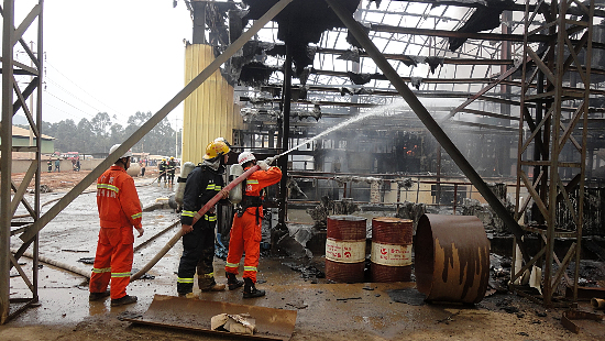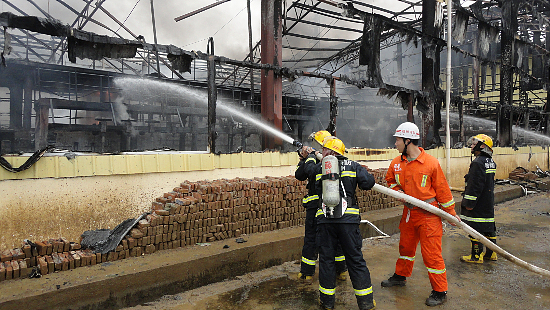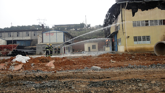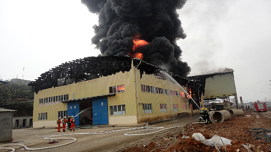 ??? 今日13時(shí)20分,梧州市藤縣富吉大橋橋頭梧州市金茂鈦白粉廠發(fā)生火災(zāi),起火廠房?jī)?nèi)堆放有煤油、鹽酸、硫酸等易燃化學(xué)物品。經(jīng)過(guò)消防官兵奮力撲救,火勢(shì)于14時(shí)20分得到有效控制,明火已經(jīng)撲滅,目前正在清理余火,火災(zāi)暫未發(fā)現(xiàn)人員傷亡,火災(zāi)原因和財(cái)產(chǎn)損失正在進(jìn)一步調(diào)查統(tǒng)計(jì)中。