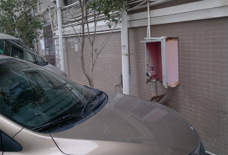 ??? 現在的小區車位緊張,一些司機于是將車停在了消防栓的前面。如圖一幕是3月15日筆者在西環路盤龍城小區內見到,一旦發生火災,這里的消防水龍頭卻難以使用。 亞森/攝