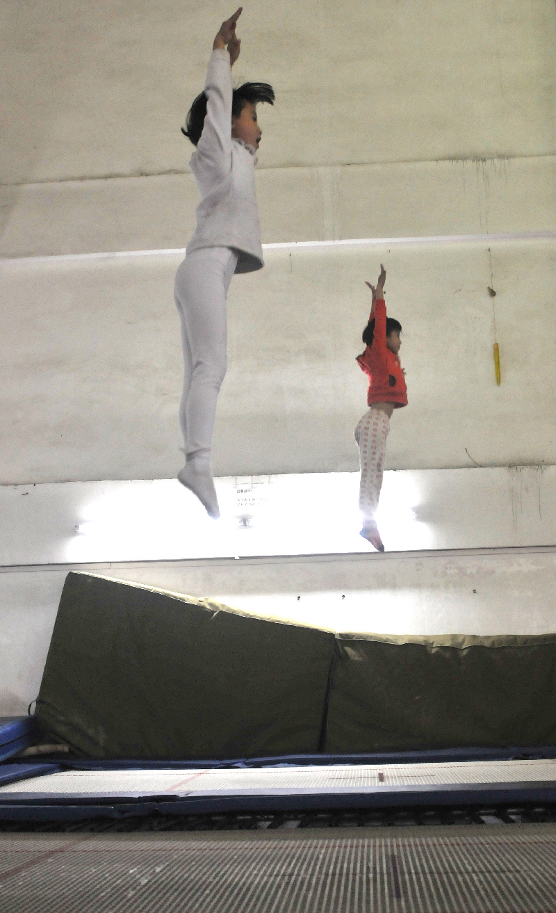 ????“上場前當然會緊張,手心還會出汗!”7歲的溫柏瑩告訴記者,最讓她擔心的就是后空翻動作,“平衡很不好控制,會摔?!痹谟柧毮承┛辗瓌幼鲿r,教練一般會在運動員旁邊準備一塊軟墊,但遇上難度較大的動作時,則更為考驗小隊員的心理素質。“也想過放棄,但爸爸媽媽和教練一定會讓我堅持到底?!睖匕噩撜f。