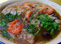 相傳是清宮食譜之一,因關(guān)配有山珍、海味、時(shí)鮮八味,味道相異相輔,如“八仙過海,各顯神通”,故而得名。八仙粉以鮮滑清爽為特點(diǎn)。