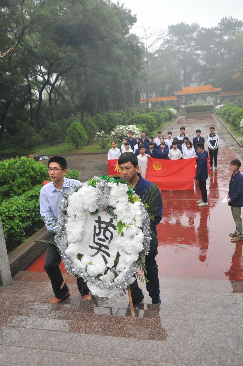 ????清明節快到,市第七中學在周末時間組織部分教師、學生,來到珠山烈士陵園開展祭掃活動。同學們獻上親手制作的花圈,以表達到革命先烈的緬懷之情。 李鴻榮 攝