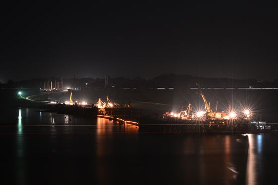 ????與7號和10號主墩不同,位于江中間的8號和9號主墩目前的工作仍以樁基施工為主。現場14臺樁機同時運作,加快水下鉆孔。橋墩位置所在的水下地質狀況十分復雜,鉆孔難度大,施工方為了確保施工進度,預先購買部分備用錘。相關人員輪班值守,隨時發現問題解決問題,爭取盡快完成所有的樁基施工。
