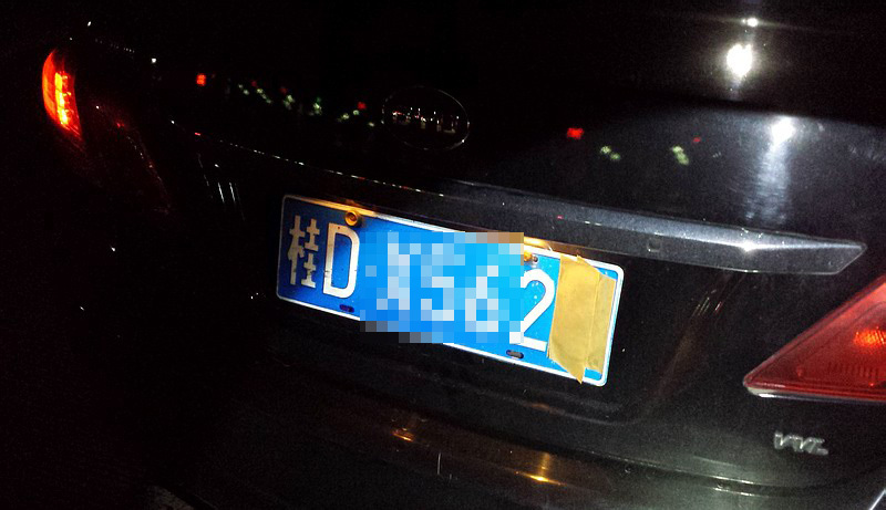 ????3月31日晚上21時許,民警在粵桂省際卡口桂東收費站前200米執勤點設卡,對車輛進行例行檢查。車流中,一輛從廣東方向迎面駛來的黑色小轎車經過執勤點時,引起了民警的注意。民警上前仔細檢查后發現,該車前后車牌最后一個數字,均被用黃色膠紙粘貼住。駕駛員黃×支支吾吾地說,他這次清明祭掃旅途趕時間超速行駛,為躲避被電子眼抓拍處罰,耍起了小聰明,把車牌后面的一個數字遮住。不料,剛進入廣西東大門,就被交警逮個正著。執勤民警耐心對其進行了教育,并依照《道路交通安全法》對其作出罰款200元、扣12分的處理。