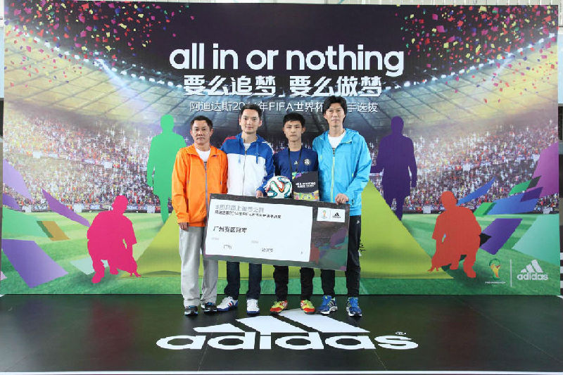 ????今年2月,為推進足球運動在各地青少年群體中的開展,給青少年提供一個親臨世界杯的機會,阿迪達斯公司與校園足球聯盟舉辦2014年世界杯護旗手的選拔。此次選拔以北京、上海、廣州、成都為賽區,各賽區推選出一名14-17周歲的中國青少年,擔任世界杯半決賽的護旗手。