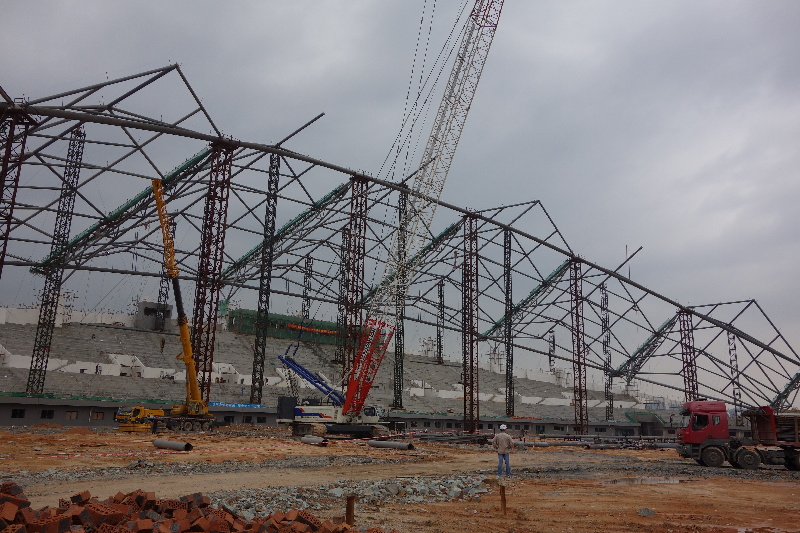 ????據了解,位于紅嶺片區、作為明年第十三屆區運會主體育場的市體育場項目,主體結構已基本完成,完成總工程量的80%左右。施工方正全力推進鋼結構吊裝和內墻裝修、瓷磚鋪貼、外墻玻璃等工作,爭取盡早完成工程建設并通過驗收?! ×浩?攝