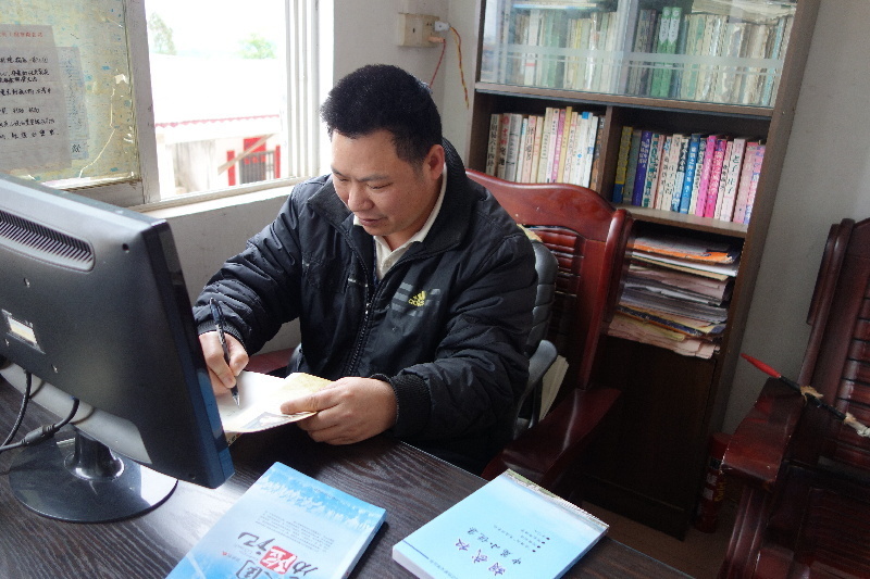 ????閣樓里,匍匐在一平方米的電腦桌前創作,是胡武權現在的絕大部分生活狀態。胡武權只有高中文化,沒有經過系統的寫作學習,為了提高自己的創作水平,他時刻嚴格要求自己。在電腦桌旁,他貼了雪萊的寫作守則:“人物是小說的核心”、“作者的任務就是塑造人物來反映社會現實生活”……“寫作如織簸箕、織羅斗,開頭收尾自有標準?!焙錂嘁猿錆M鄉土經驗的大白話詮釋對寫作的認識。