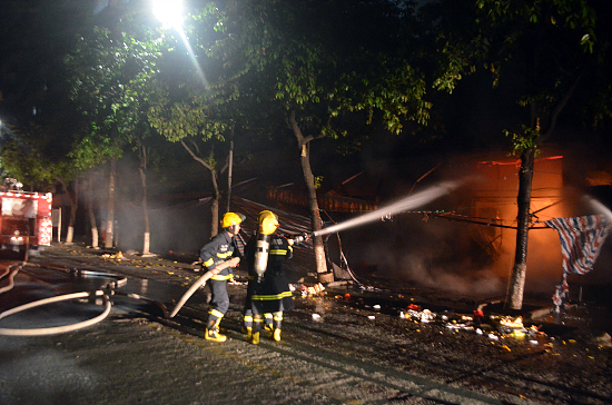????凌晨5時13分,消防官兵到達火災現場發現,起火位置為一家經營水果銷售的攤鋪,此時,攤鋪周圍一片通紅,火勢正處于猛烈燃燒階段,火光沖天并伴隨著滾滾濃煙,火勢威脅著樓上的居民和鄰近的商鋪,情況危急,如不及時控制火勢發展,后果堪憂。
