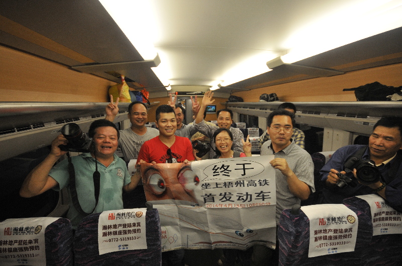 ????4月18日,梧州零距離網友慶祝自己坐上了梧州首發動車,該趟車從梧州南站發往桂林。西江都市報記者 蒙紹松/攝