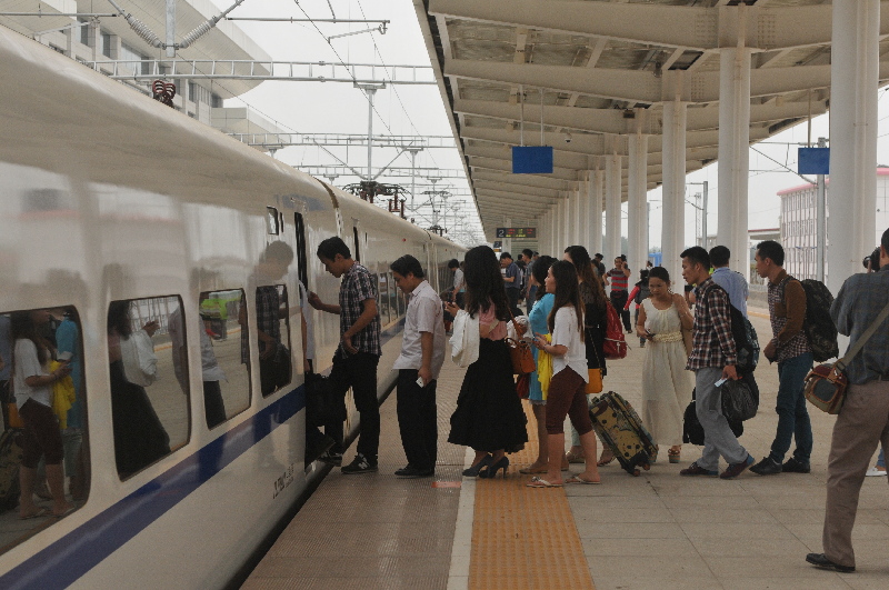梧州往桂林沿途站點,乘客們有序上車。 |