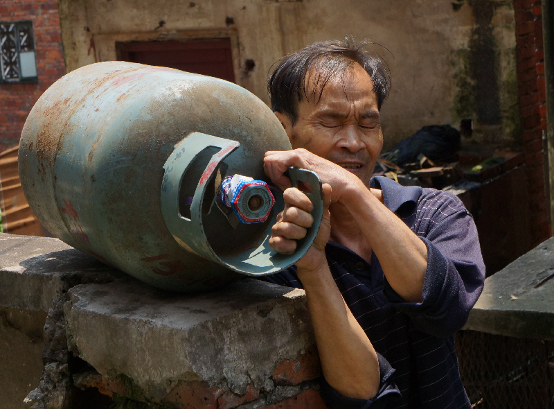 ????而他背液化氣罐上山的次數變化,也隨著云蓋山住戶的搬遷而改變。“云蓋山的住戶搬遷之前,我一天要背二十多罐液化氣上山,如今一天平均一罐也不到?!薄皹s記”說,十多年來,他也沒干過其他的活,主要靠體力幫人運送液化氣來維持生計。