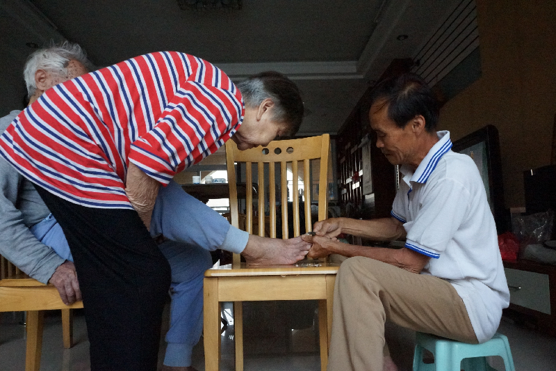為人熱心的袁志榮,不但與街坊鄰里和諧融洽,還常常為老人修剪指甲。