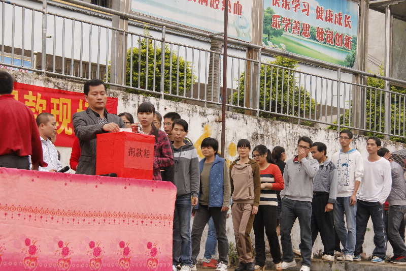4月23日,藤縣和平鎮第一初級中學師生為李彩潔老師捐款。 梁光平/攝
