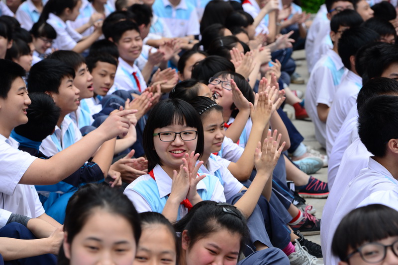 ??? 現(xiàn)場觀看的學生對特警們精湛的技能報以熱烈的掌聲。梁觀遠 攝