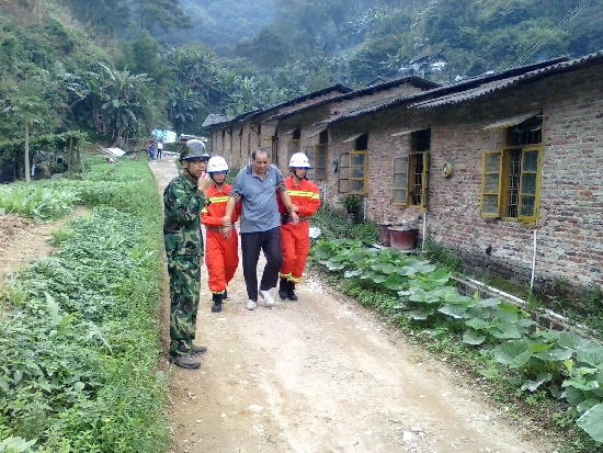 第二環節是模擬山洪、泥石流地質災害發生后如何緊急撤離群眾。演練中,醫療應急隊、突擊搶險隊、消防救援隊、公安民警等救援隊伍,相繼進入現場開展援救群眾的工作,并把群眾撤離到指定安置點,由救災組進行安置。