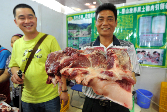 5月16日,來自蒙山的企業帶來生態豬肉參展。 記者 何鎏/攝