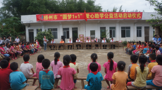 ????梧州零距離網訊(記者 鄭玉華 通訊員 王秋聲) 5月29日,由市委宣傳部、市文明辦、市教育局、團市委、梧州日報社、梧州電視臺、梧州電臺聯合開展的梧州市“圓夢1+1”愛心助學公益活動,在藤縣藤州鎮新華小學舉行啟動儀式,旨在以新聞媒體為橋梁,發動社會各界愛心團體及個人為山區學校提供幫助,改善山區學校的辦學條件,關注山區學生的教育成長。