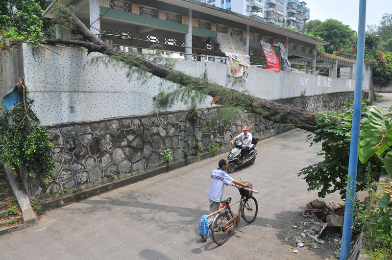 ?6月9日,在富民三路25號宿舍樓前,人們在一棵傾倒橫架在路上的大樹下穿行。 據(jù)附近居民反映,這棵大樹在5月中旬的一場大風雨中倒下,但至今仍未見有關部門來處理。附近街坊每天都要從危樹下經(jīng)過,十分擔心發(fā)生意外。