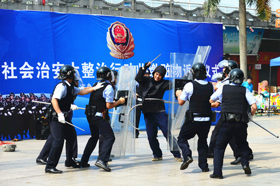 ????在活動中,來自萬秀公安、檢察、消防、法院等部門不僅向廣大市民展示了公安、消防的先進儀器設備,還通過發放材料、放置宣傳展板、文藝演出等多種多樣的形式,向市民宣傳防范暴力恐怖事件、識別假幣、分辨非法傳銷以及邪教等相關法律法規知識。