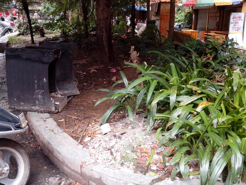新興小區(qū)小游園舞臺旁的一處綠化帶,成了不少市民的“方便”之地。