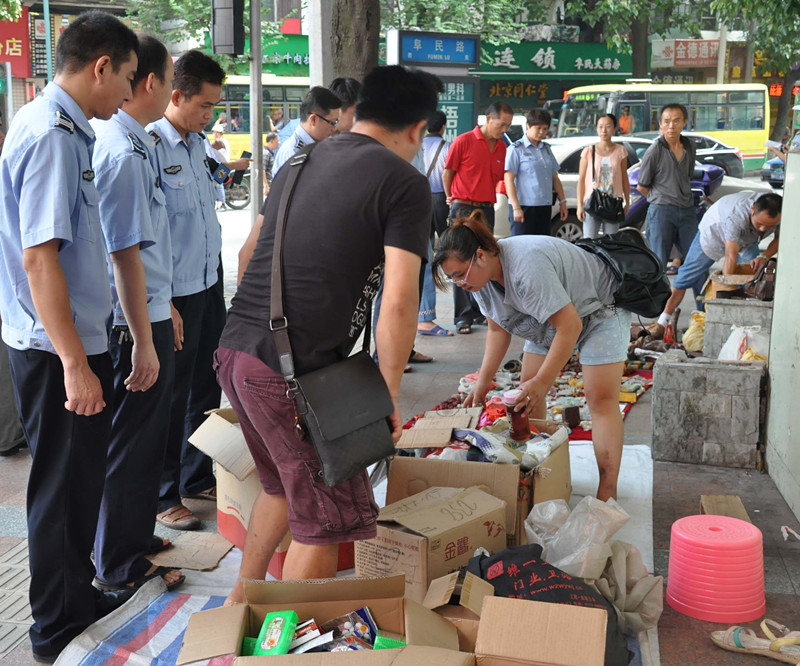 ????據統計,昨日萬秀區聯合執法行動共查處亂擺亂賣、無證流動攤販18起。 |