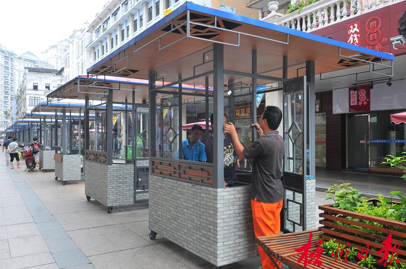 ????據悉,小吃街管理部門計劃在街道上增設十多個小吃售賣亭,提供給飲食小商家進駐經營,豐富小吃品種。目前,這些小吃售賣亭正進行裝修。 李鴻榮 攝