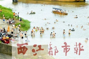 到桂江暢游消暑是梧州市民的習俗,但是,到江中游泳,安全往往得不到保障,市民必須注意安全。記者 蒙紹松/攝