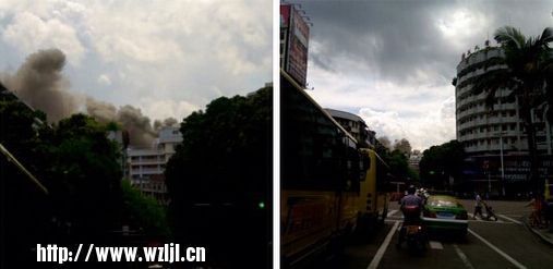 ??? 梧州零距離網訊 7月15日中午,一組市工人醫院附近建筑樓頂冒出大量濃煙的圖片在網上流傳轉發,網友議論紛紛該處是否發生了重大的火災事故。隨后,本網記者立即趕往現場進行調查,經現場多方查看,市工人醫院附近并沒有發現網上流傳的圖片中冒出大量濃煙的情況。