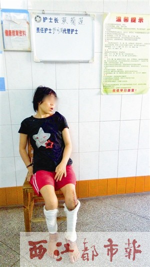 ????7月23日,記者在梧州市人民醫(yī)院看到,該女子雙腿還殘留著手術(shù)后的痕跡,經(jīng)過長(zhǎng)達(dá)半年的康復(fù)治療,她目前身體狀況良好,精神狀況也不錯(cuò)。