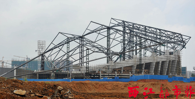 ????目前,梧州市體育場建設(shè)工程正抓緊進(jìn)行,場內(nèi)的鋼架結(jié)構(gòu)搭建基本完成。