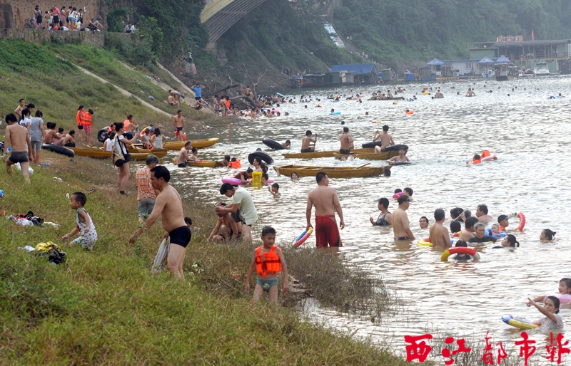 ??? 今年的8月2日是七夕節。在梧州市,不少市民都有“游七姐水”的習慣,他們相信這樣會令自己的身體更健康。昨天一大早,桂江邊上就熱鬧起來,結伴前來游泳戲水的市民絡繹不絕。