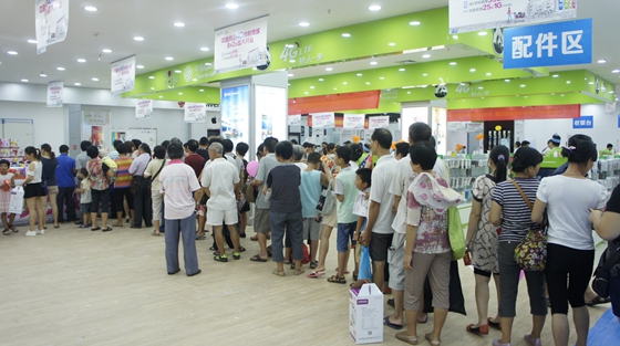 開業當天,參加4G促銷優惠活動的市民排起了長龍