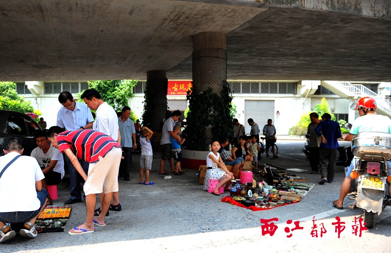?8月2日,不少市民在光顧位于鴛江大橋河東橋底的古玩攤點。據了解,這些攤販一般在雙休日到橋底擺賣,由于橋底是停車點,橋底兩側是機動車道,車輛往來不斷,讓這里形成交通安全隱患。