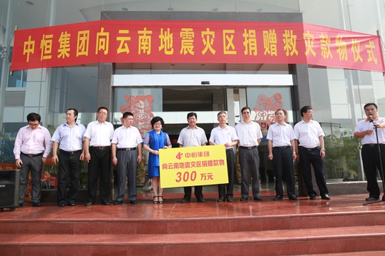 ??? 8月5日,中恒集團向云南地震災區捐贈救災款物儀式在該集團的生產基地舉行。儀式上,廣西紅十字會副會長王宇接受了許淑清代表中恒集團捐贈的價值300萬元善款物資。梧州市副市長嚴伯貴出席捐贈儀式,梧州市紅十字會副會長黃超亮主持儀式。捐贈儀式后,一輛滿載藥品和食品等救災物資,以及中恒集團全體員工、梧州人民和廣西人民愛心的大卡車,在紅十字會人員的隨同下正式發車駛出中恒集團梧州制藥廠區急援災區。