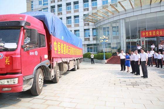滿載中恒集團愛心物資的大卡車發車馳援云南地震災區