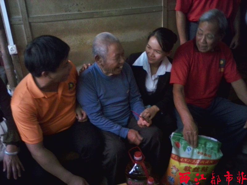10月15日,梧州市區部分愛心企業的代表,向萬秀區城中街道辦事處東正社區里的百歲老人及困難家庭送上慰問品及慰問金,而這也是社區“敬老月”的活動之一。