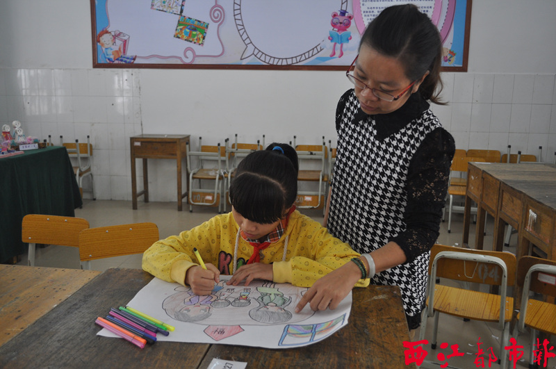 潘歡歡在老師的指導(dǎo)下修改作品。