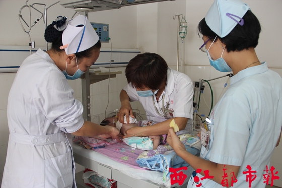 ????怎么辦?夫婦倆當(dāng)即商量,廣東佛山的醫(yī)療費(fèi)用太高,自己遠(yuǎn)遠(yuǎn)負(fù)擔(dān)不起。可是,親生骨肉怎能夠輕言放棄?于是,10月19日,夫婦倆只好趕緊帶著小孩回到老家,找到倒水鎮(zhèn)衛(wèi)生院救治。