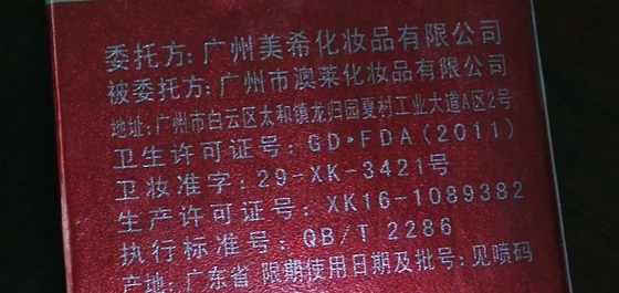 據(jù)執(zhí)法人員介紹,正規(guī)的化妝品護(hù)膚品應(yīng)像此產(chǎn)品一樣,有明確的生產(chǎn)廠家、生產(chǎn)地、衛(wèi)妝準(zhǔn)字及生產(chǎn)許可證號(hào)、執(zhí)行標(biāo)準(zhǔn)號(hào)等,可在國(guó)家藥監(jiān)網(wǎng)站上查詢到系列標(biāo)注。